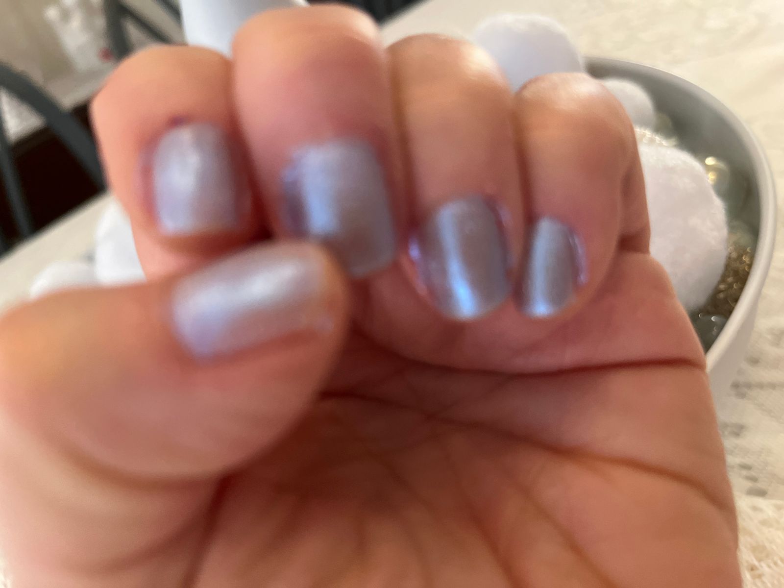 A baby blue frosted holographic shimmer that feels like texting your bestie on your first flip phone - shiny and unforgettable.